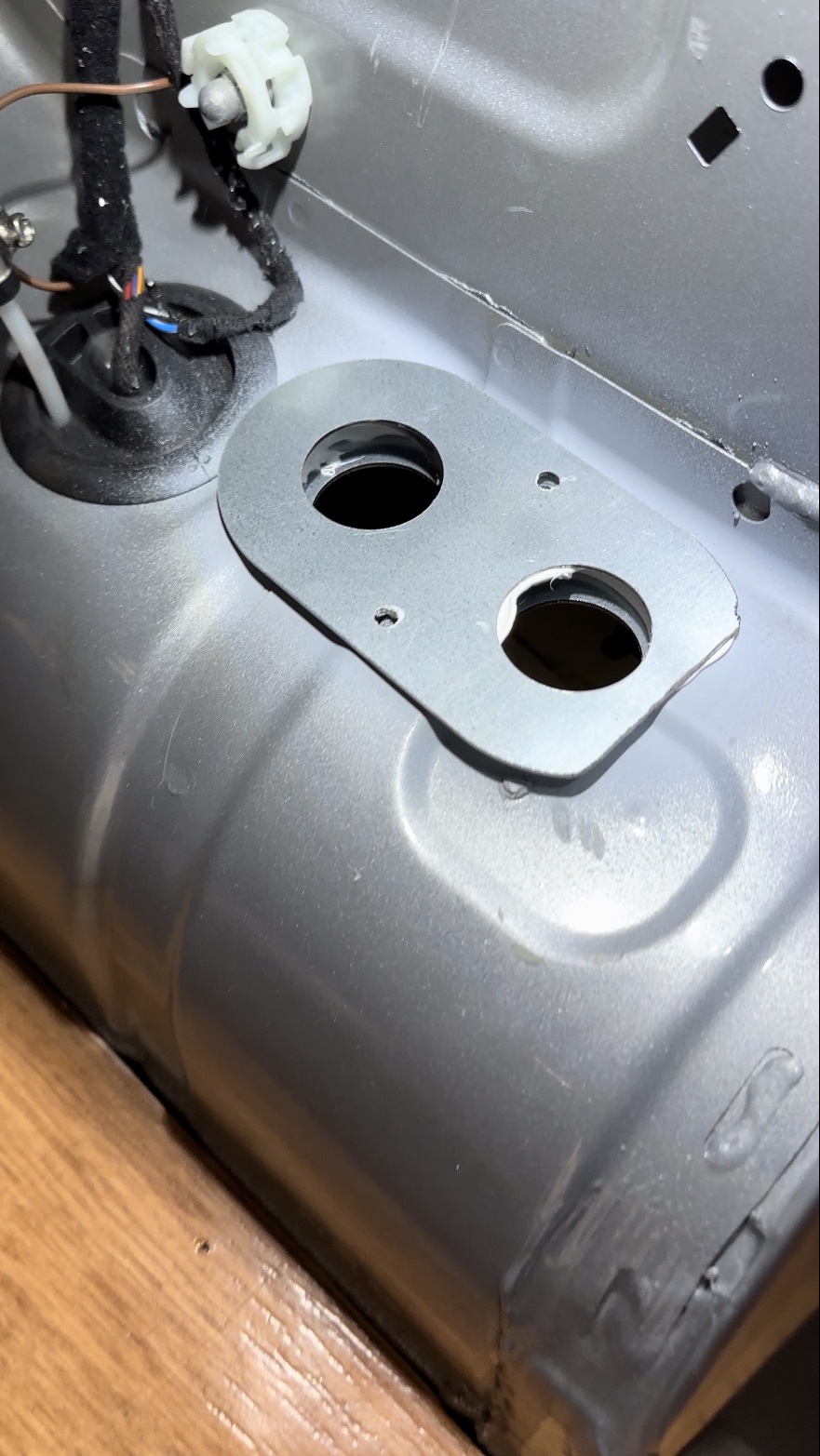 We drilled a hole on the upper side of the tank, shortened the fuel standpipe to the correct length and fastened it with the screws on the fuel standpipe.